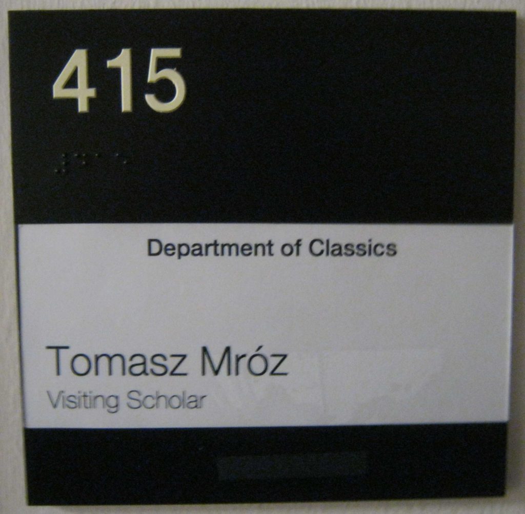 This year a merited institution supporting the development of Polish sciences, arts and humanities, Kosciuszko Foundation, celebrates its centennial anniversary. A decade ago Tomasz Mróz was a Kosciuszko Fellow at the University of Iowa, in the Department of Classics, whose Head at that time was Professor John Finamore.