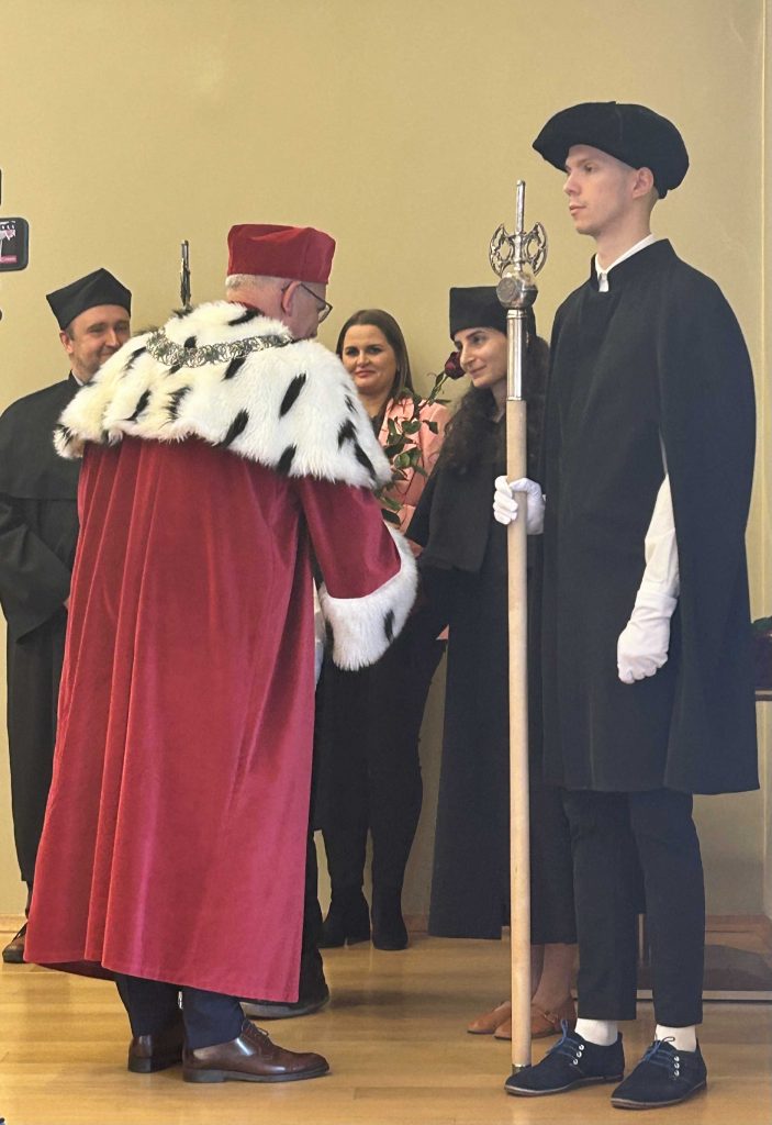 The degree holder was Mariam Sargsyan, (now Ph.D.!), who – after taking a traditional doctoral oath in Latin to the Rector Magnificus of the University of Zielona Góra, prof. dr hab. Wojciech Strzyżewski – was officially granted the doctoral title cum laude and the diploma by her academic supervisor, dr hab. Tomasz Mróz.
